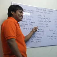 マニラ大学で、英語をを専攻し卒業した先生で、いろいろな質問にも語源や文法の切り口、更にTOEICでの注意点に至るまで広げて教えてくれました。